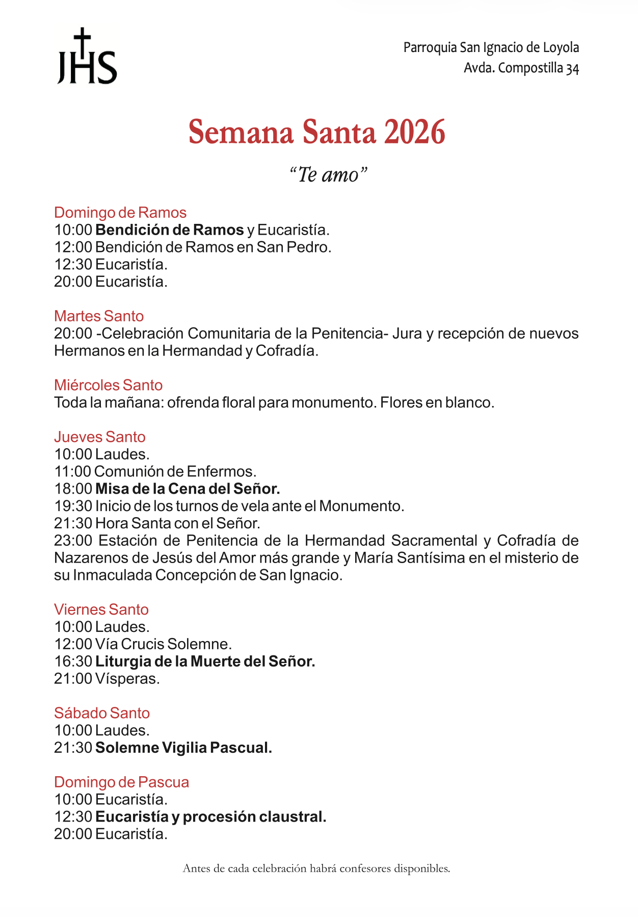Horarios Semana Santa 2026